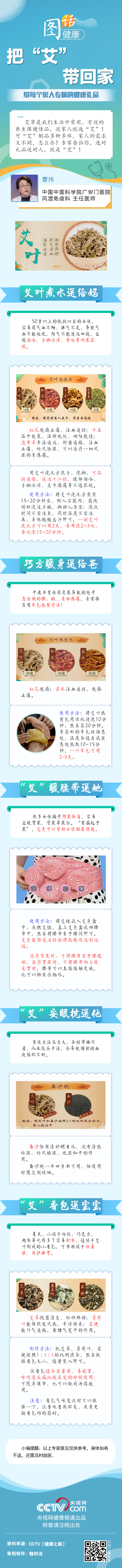 艾草是我们生活中常用、有效的养生保健佳品,送家人就选“艾”!可“艾”制品多种多样,家人的需求又不同,怎么办?专家告诉你,选对礼品送对人,就是“艾”!