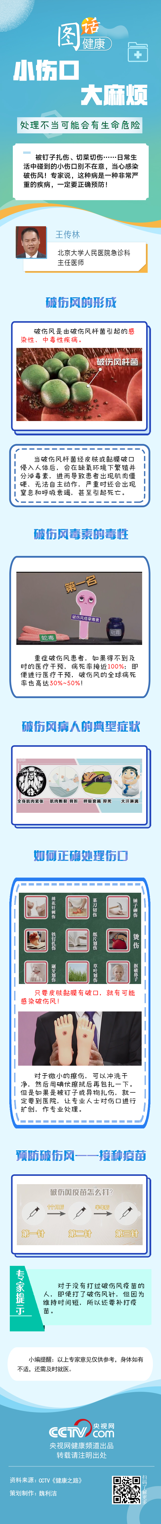 被钉子扎伤、切菜切伤……日常生活中碰到的小伤口别不在意,当心感染破伤风!专家说,这种病是一种非常严重的疾病,一定要正确预防!