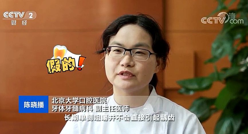 北京大学口腔医院牙体牙髓病科副主任医师陈晓播介绍,这个不是真的,长期单侧咀嚼并不会直接引起龋齿。