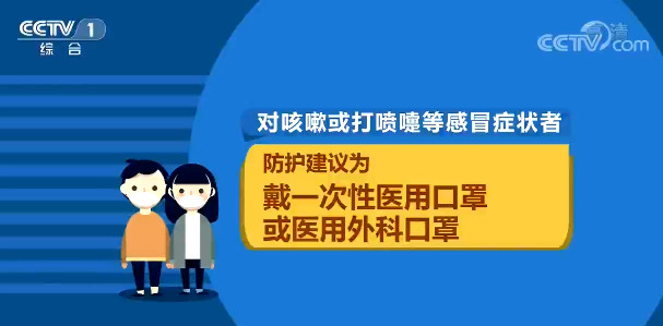 国务院有关部门印发了《公众科学戴口罩指引》。其中,对普通公众处于居家、户外,无人员聚集、通风良好环境中的防护建议为不戴口罩;对咳嗽或打喷嚏等感冒症状者的防护建议为,戴一次性医用口罩或医用外科口罩。