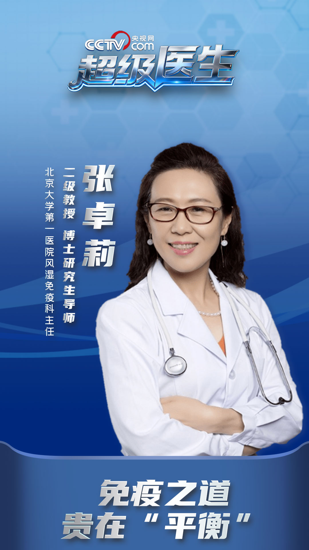 央视网《超级医生》特邀北京大学第一医院风湿免疫科主任、二级教授、博士研究生导师张卓莉,为您解密免疫黄金法则——平衡